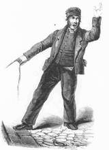 de straat op. Maar als hij zijn waren liet zien en probeerde iets te verkopen