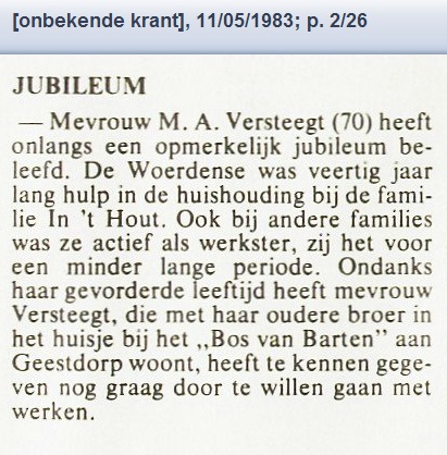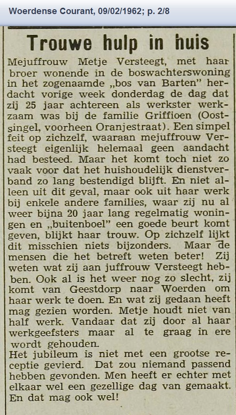 Metje Versteegt die ongehuwd bleven en uiteindelijk in de jaren 80 van