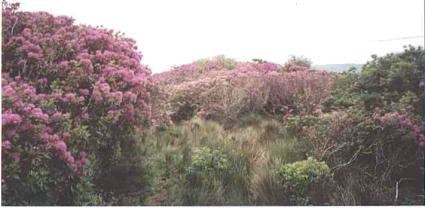 Op de veengrond doen vooral de rhododendrons het goed. Zo