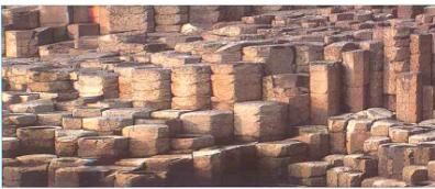 wereldberoemd natuurverschijnsel. Aan de kust liggen duizenden basaltblokken, allemaal